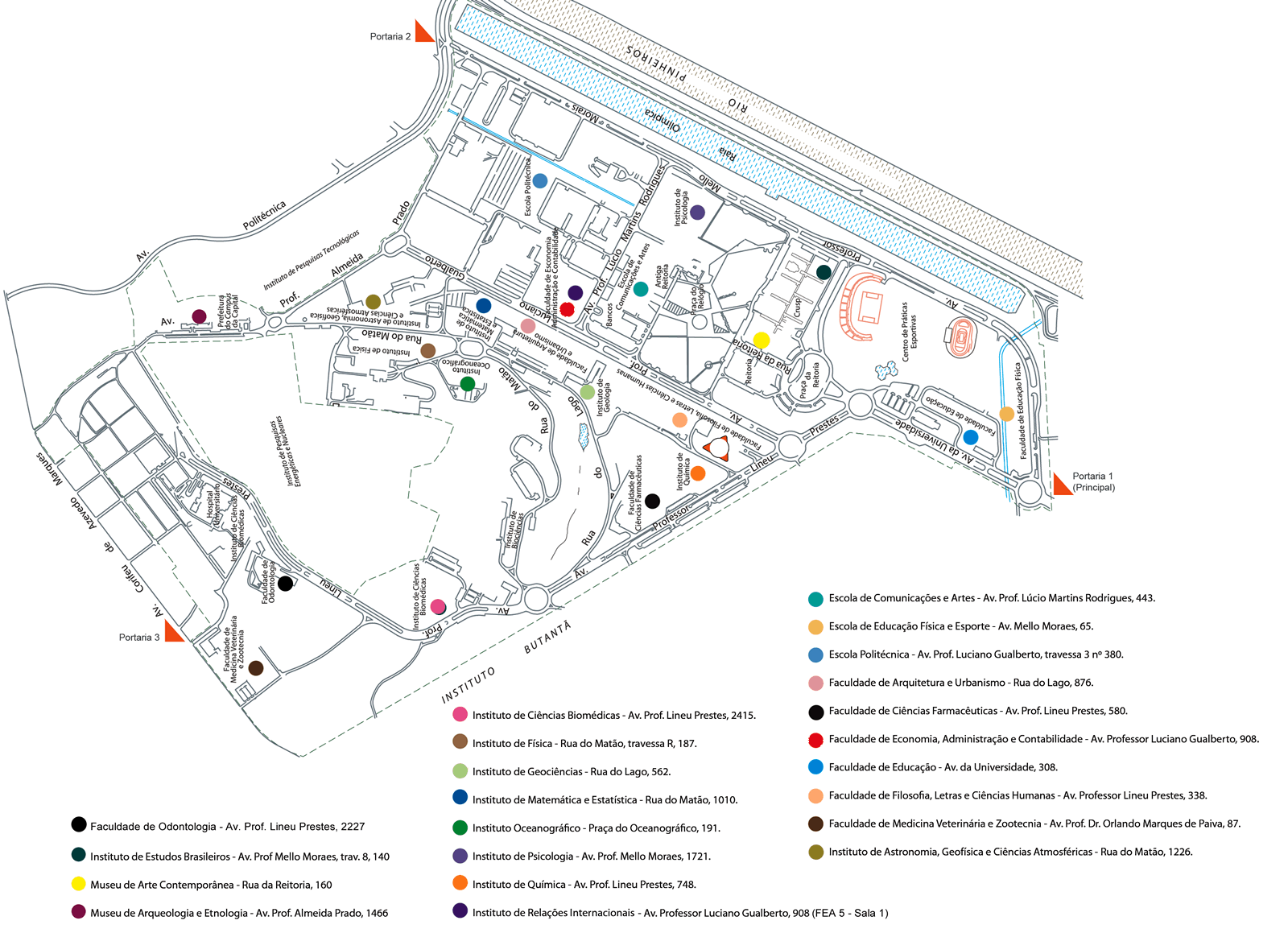 - Portão 03: acesso pela Av. Corifeu de Azevedo Marques
